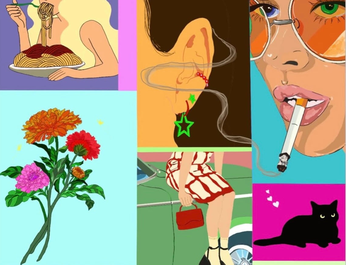 この作品は、私自身の視点から見た女性の思考や偏見を、ポップな表現で描いたものです。