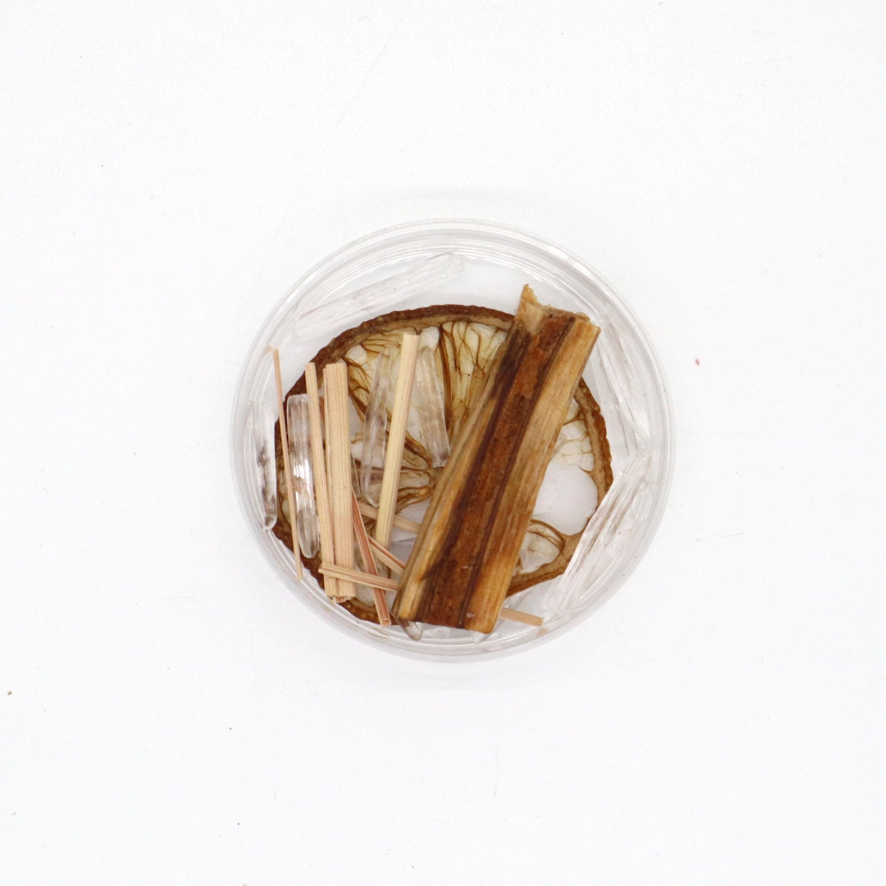 パロサントの甘く温かい香りと、柑橘系精油とハッカの爽快感を合わせた香り。