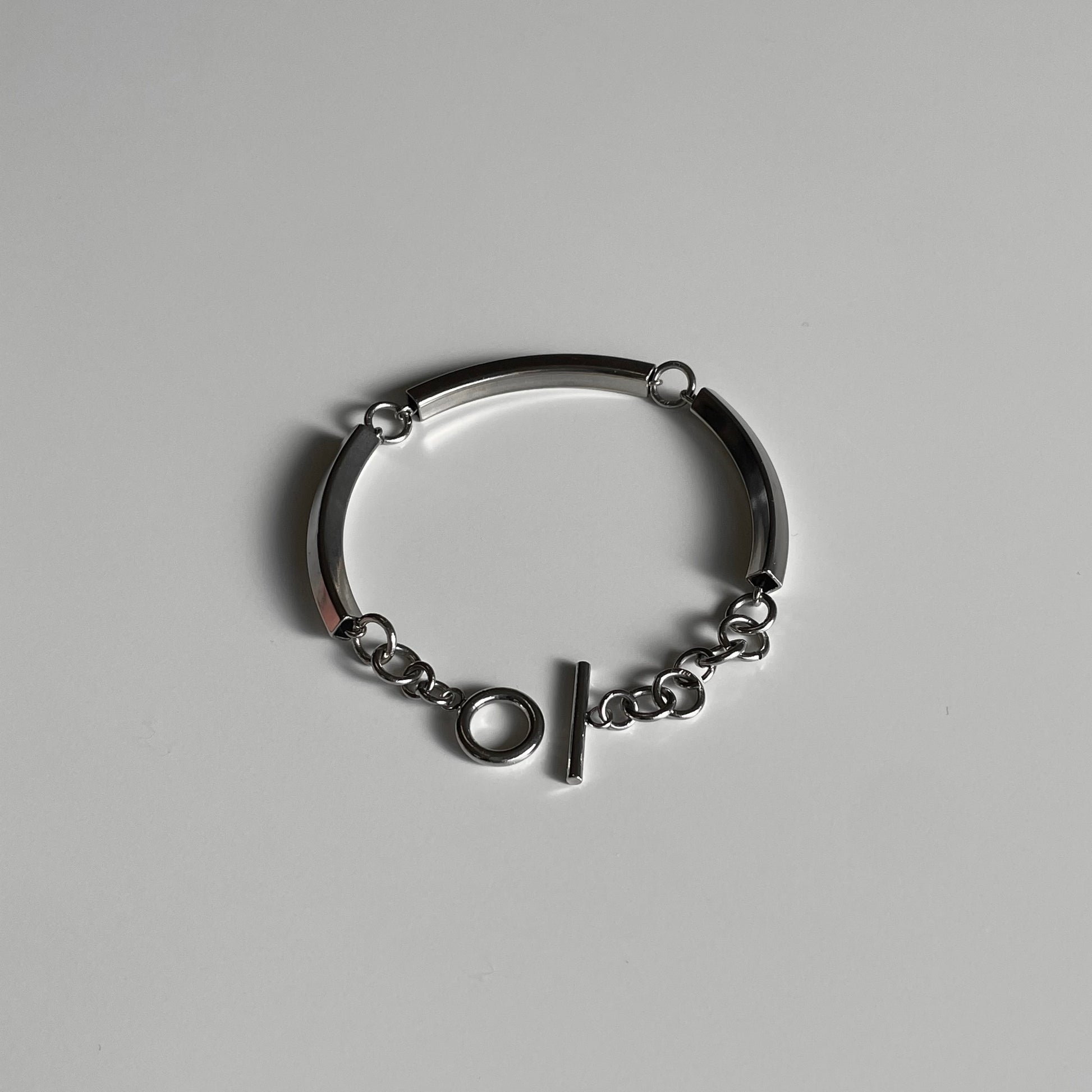 美しいカーブを描くセグメントと、連なる輪が織りなすバングルブレスレット。