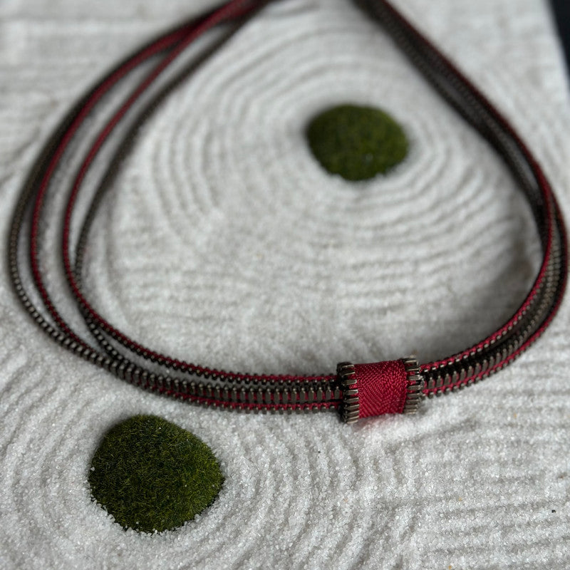川の流れのようにしなやかな曲線を、ファスナーで表現したハンドメイドネックレス。