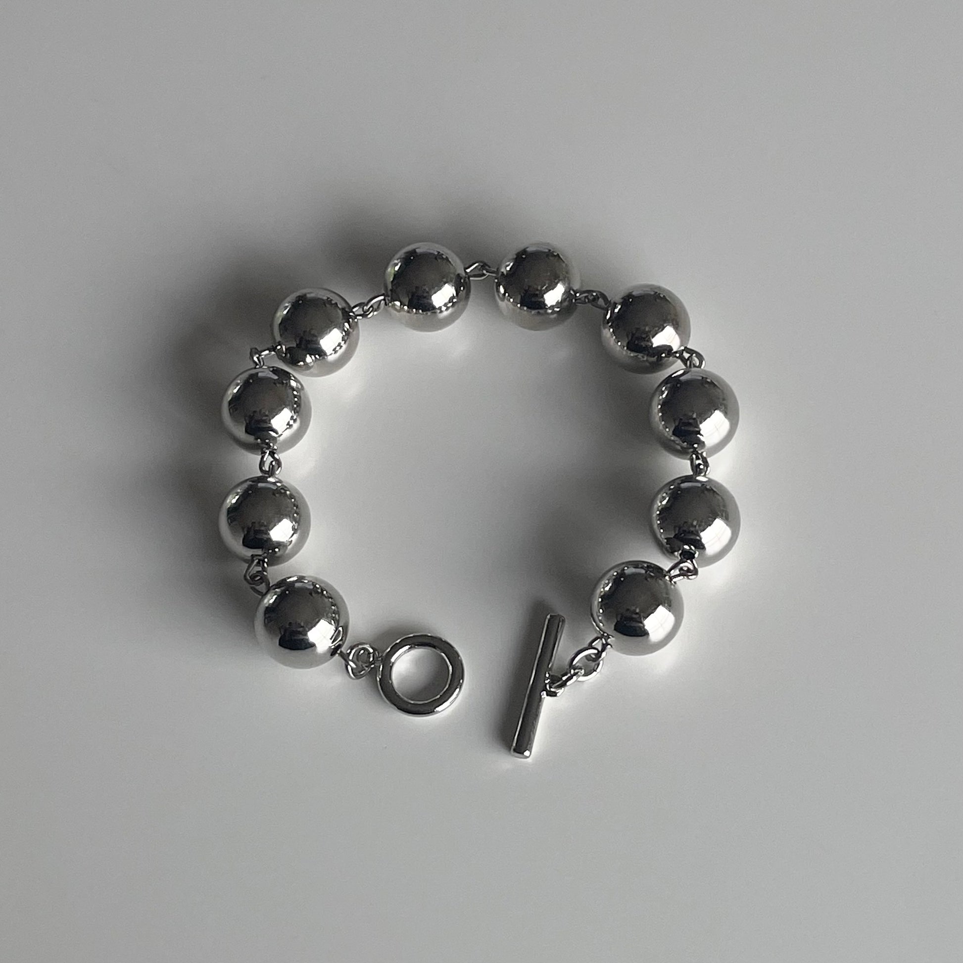 定番のシルバーボールブレスレットを、ひと回り小さなボールでミニマルに仕立てた一本。