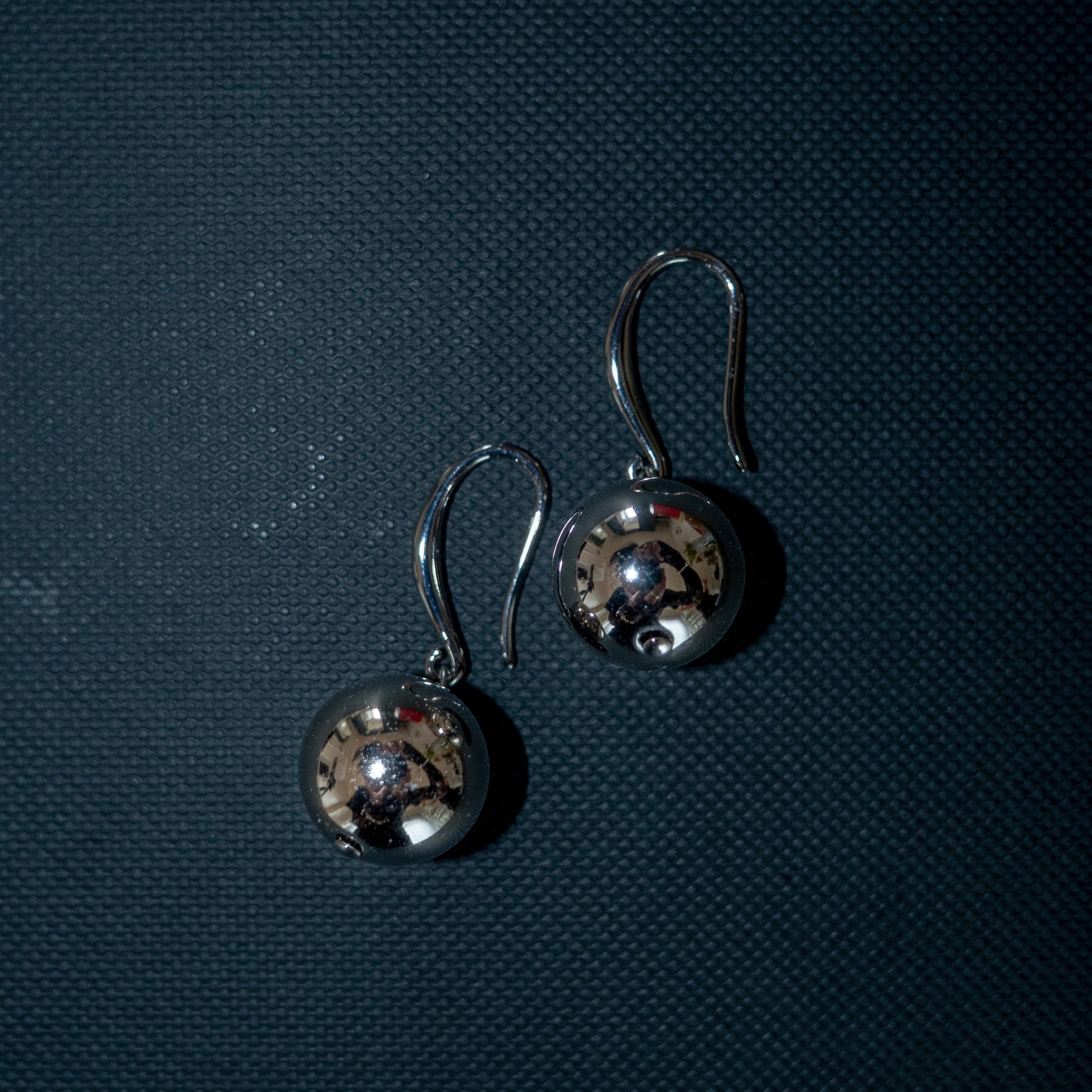 光を受けて柔らかく輝くシルバーボールが、あなたの耳元に洗練されたオーラを纏わせます。